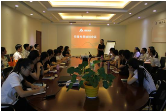 運營管理部相關負責人針對客服類課題,進行了專業(yè)的指導培訓??偣矩攧詹拷?jīng)理胡利平對營改增之后相關財務知識進行解讀。最后,副總經(jīng)理張禮輝作總結(jié)性發(fā)言,張總強調(diào):行政專員作為上傳下達的中樞性崗位,一定要提高自身專業(yè)能力,服務并指導好各自管轄的服務中心。