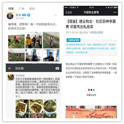 濟源、三門峽等分公司與當?shù)胤抗芫?、電臺、晨報、項目公司緊密配合,舉辦大型廚神爭霸賽、元旦喜樂會等活動,吸引了中國物協(xié)等社會媒體的廣泛關注,并取得了良好效果。漯河、平頂山、洛陽等分公司充分利用建業(yè)一家APP、微信、直播平臺等載體,實現(xiàn)線上線下的充分互動,更是贏得了業(yè)主的一致好評。插花、葫蘆絲、樂器、乒乓球、書法協(xié)會等社群組織的持續(xù)運營和活躍,倡導并引領了業(yè)主的新型生活理念。