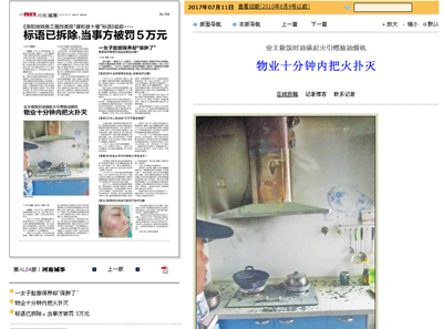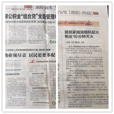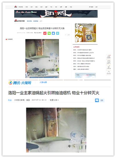 2017年7月6日,洛陽·建業(yè)森林半島一戶居民因操作不當(dāng)引起家中抽油煙機著火,物業(yè)人員從接到消防主機煙感報警、確認火情、啟動應(yīng)急預(yù)案、到最終撲滅起火點,用時不到10分鐘,避免了一場可能威脅到廣大業(yè)主生命和財產(chǎn)安全的災(zāi)難。消防主管部門對建業(yè)物業(yè)應(yīng)對此類突發(fā)事件的處置過程及時、得當(dāng)給予了高度贊揚。