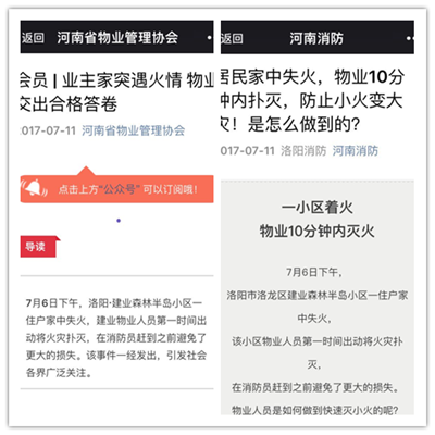 河南消防、河南省物業(yè)協(xié)會等微信公眾號報道