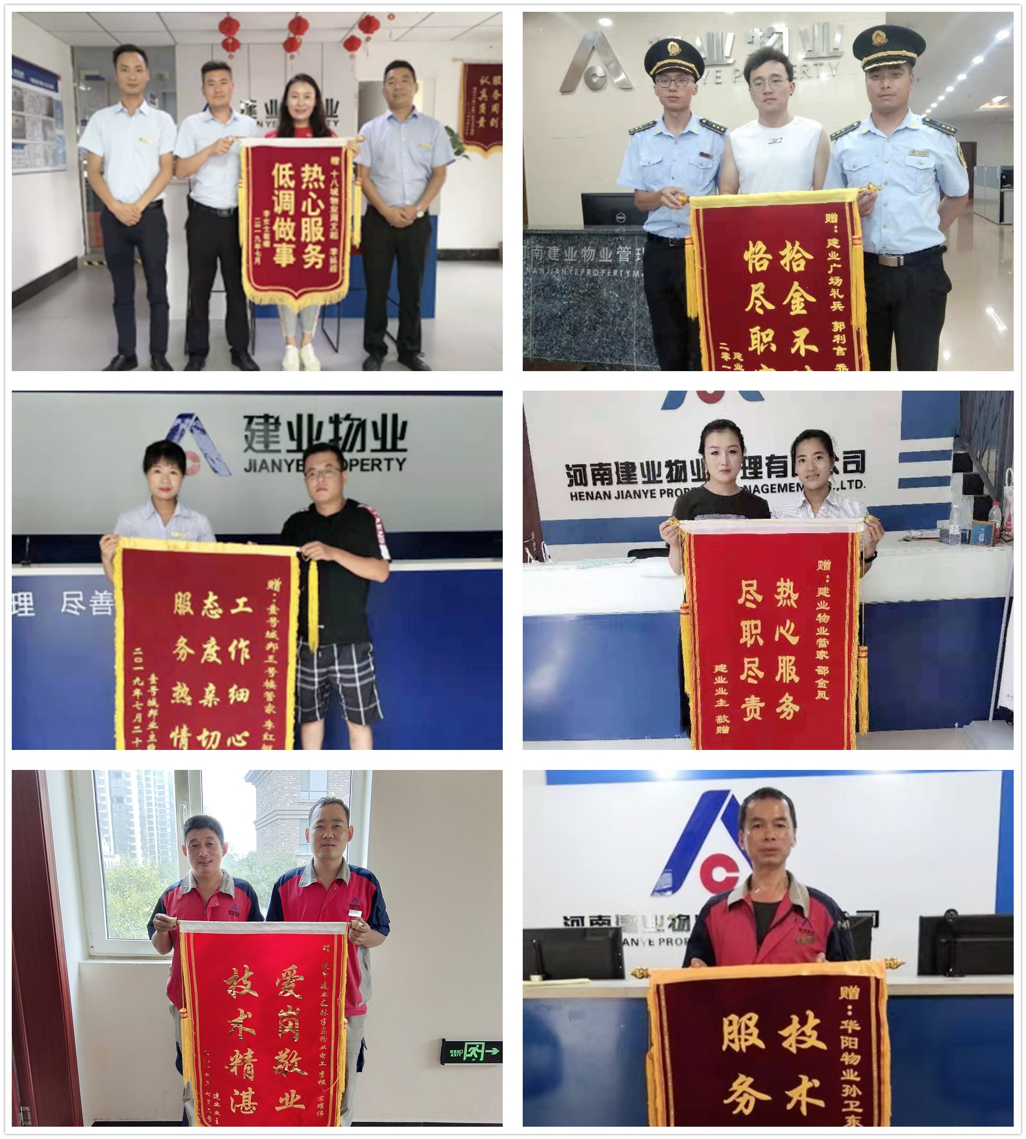 七月流火,炎陽(yáng)炙人。在剛剛過(guò)去的七月里,建業(yè)物業(yè)人無(wú)懼酷暑、堅(jiān)守崗位,堅(jiān)持提供品質(zhì)服務(wù),贏得了眾多業(yè)主的一片盛贊。七月,全省在管小區(qū)涌現(xiàn)出好人好事共計(jì)343起,其中收到錦旗94面、表?yè)P(yáng)信120封、電話及其他表?yè)P(yáng)120起。