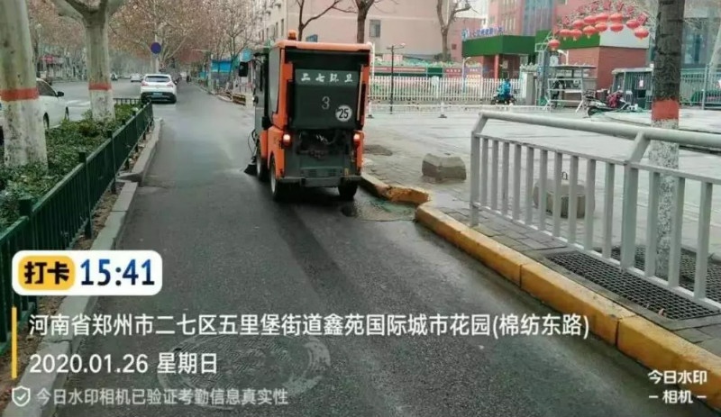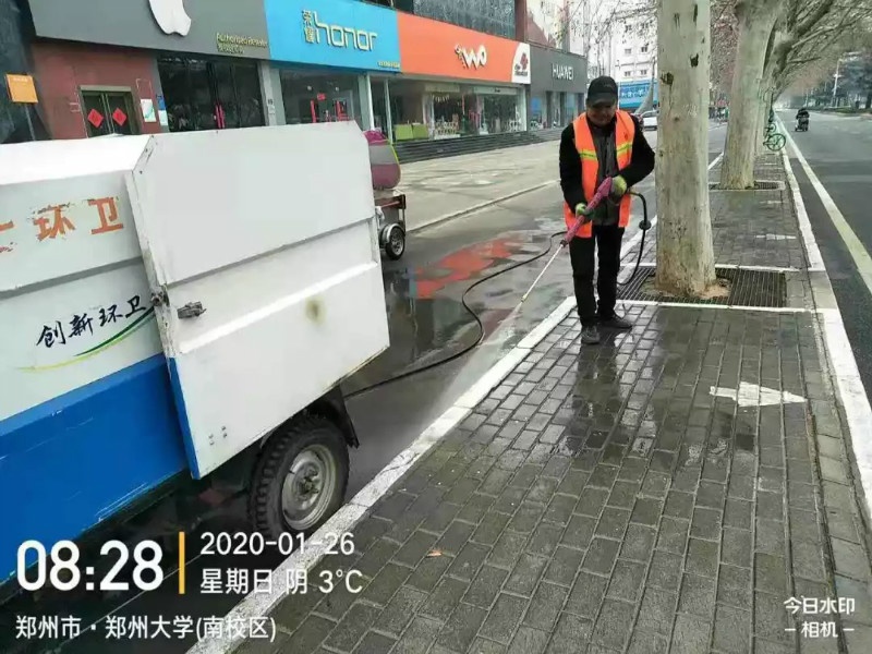 建業(yè)物業(yè)鄭州二七環(huán)衛(wèi)保潔春節(jié)期間每日出動(dòng)各類(lèi)環(huán)衛(wèi)車(chē)輛40余臺(tái),清擦果皮箱380多個(gè),沖刷油污道路50余處,清理落葉3噸左右,沖刷道牙15000多米,清理廣告30處左右,清理衛(wèi)生死角40余處……集中清理、清洗道路,保障城市的潔凈衛(wèi)生,減少細(xì)菌病毒滋生,為防止疫情的發(fā)生貢獻(xiàn)自己的力量。