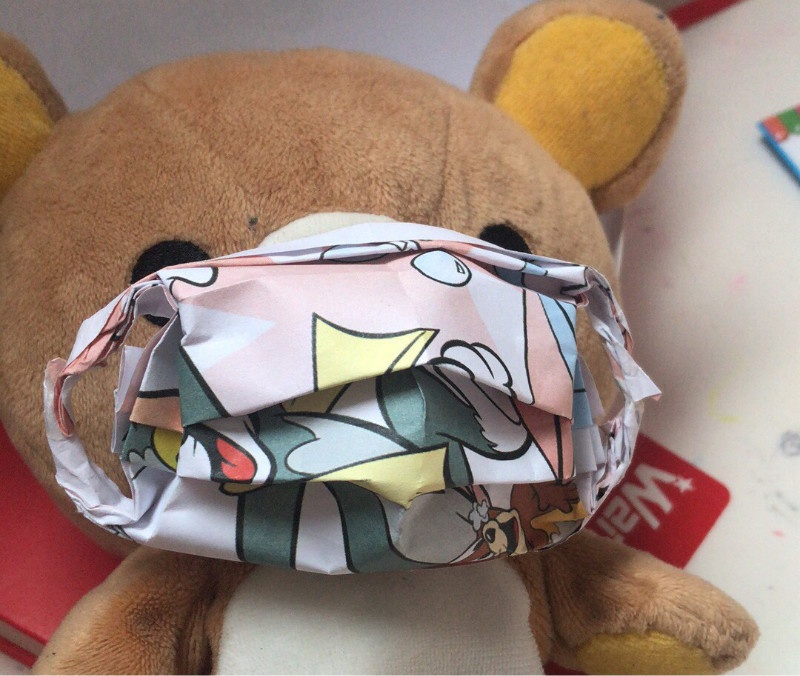 劉峰麗兒子給小熊疊個(gè)口罩,并告訴媽媽不用擔(dān)心自己,自己能照顧好自己,也能照顧好自己的小熊朋友
