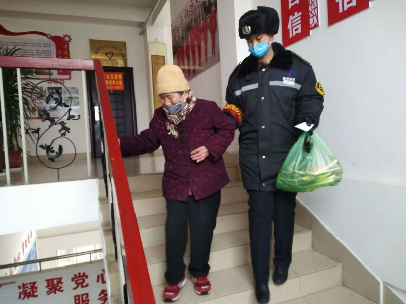 小區(qū)中有些老人,他們不會用智能手機,南陽魏崗片區(qū)的禮兵便主動上門詢問老人的身體狀況和生活情況,并為老人代購他們所需要的蔬菜、水果、藥品等物資,臨走前還不忘為老人家里作消毒工作。