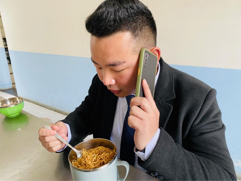 平頂山森林半島鉑金管家陳永春在吃飯期間接到業(yè)主電話,想要辦理健康證,為了不耽誤業(yè)主時間,他立刻放下碗筷幫業(yè)主辦理,再回來吃飯時,面已經(jīng)涼了。