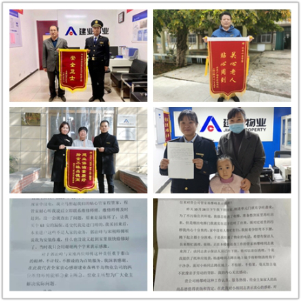 11月,建業(yè)物業(yè)在管園區(qū)內涌現(xiàn)好人好事共620件,其中收到錦旗124面、感謝信103封、其他致電表揚等393次。