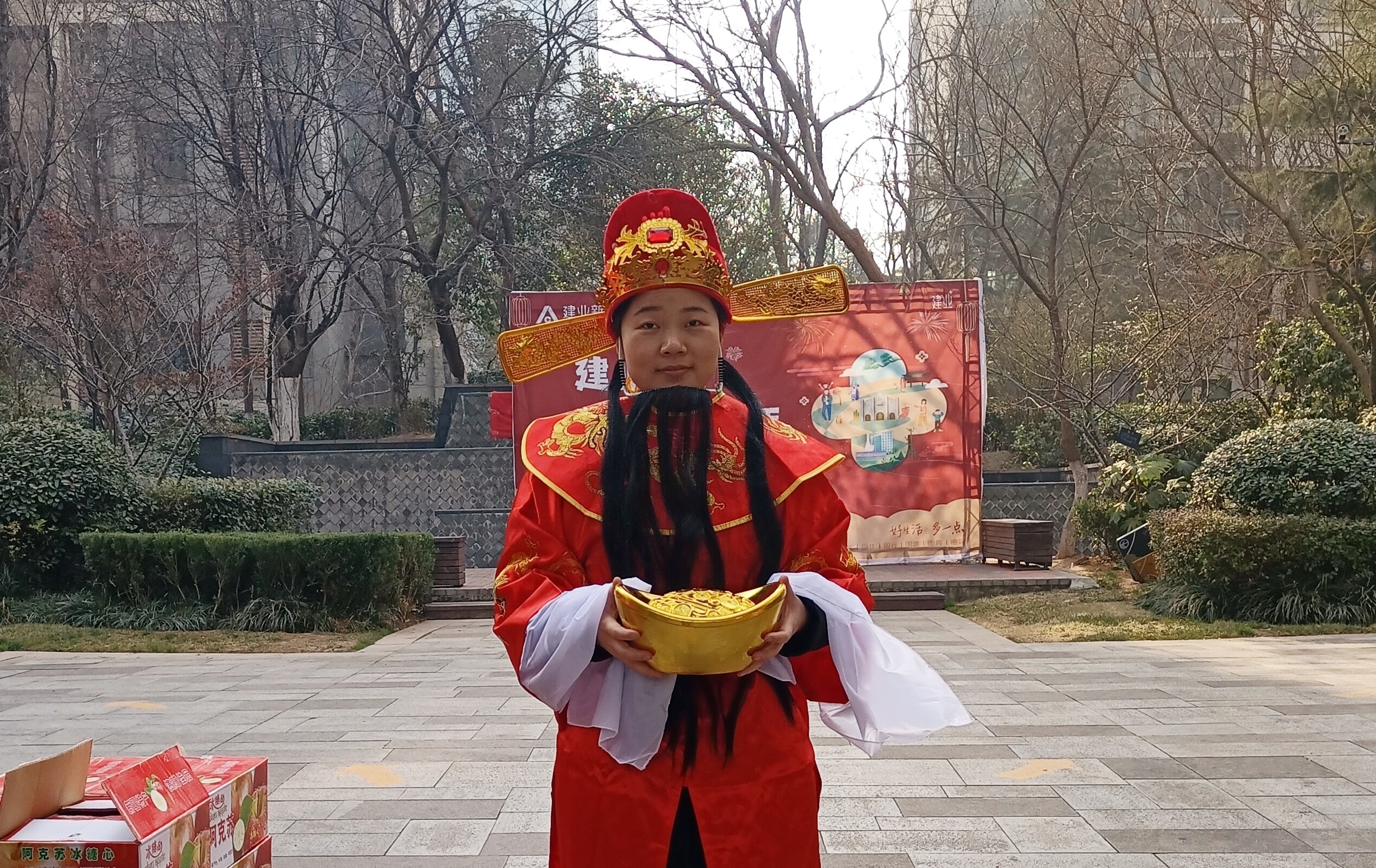 洛陽·建業(yè)世紀華陽C區(qū)管家李聰雅:今年大年三十和初一,我留守在工作崗位上幫業(yè)主貼春聯(lián)、發(fā)拜年信息、組織新年活動、和同事一起扮財神給業(yè)主拜年、派發(fā)糖果和小禮物……有趣的是,很多業(yè)主看到我們物業(yè)人在扮財神,紛紛要與我們合影,想要一起沾點喜氣,看到業(yè)主開心的模樣,我也感到很開心。雖然最重要的日子不能陪伴家人,但堅守崗位依然可以喜氣洋洋過大年!