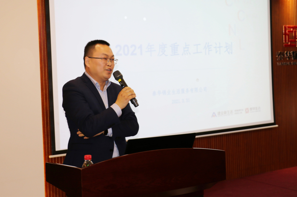 緊接著,泰華錦業(yè)生活常務(wù)副總經(jīng)理李亮亮圍繞泰華錦業(yè)生活2021年度重點工作計劃進行匯報。匯報中,李總明確了泰華錦業(yè)生活未來三年發(fā)展的核心業(yè)績指標,提出“穩(wěn)定主營收入、縱深推進增值服務(wù)”的經(jīng)營策略,“西進北上奔赴京津冀、擴大根據(jù)地”的市場發(fā)展戰(zhàn)略,同時圍繞聚焦融合、凝聚團隊、降本提質(zhì)增效,案場煥新行動、新長征100人才戰(zhàn)略、創(chuàng)新發(fā)展、對標學習、建業(yè)大服務(wù)體系體驗、行業(yè)課題研究以及紅色物業(yè)城市運營商等內(nèi)容進行匯報。
