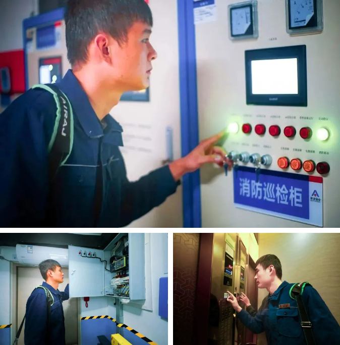 針對(duì)業(yè)主頻繁出入的場(chǎng)所--電梯,建業(yè)物業(yè)維修工遵循 “一個(gè)量化標(biāo)準(zhǔn)、N個(gè)功能檢查” 的標(biāo)準(zhǔn)進(jìn)行定期巡檢,檢查空調(diào)或排風(fēng)扇運(yùn)行情況,避免電梯機(jī)房溫度大于40℃造成故障,檢查機(jī)房照明、井道照明、轎廂照明、五方對(duì)講、安全開(kāi)關(guān)及電梯安全使用標(biāo)志有效期,確保電梯正常運(yùn)行,提升業(yè)主乘坐體驗(yàn)。